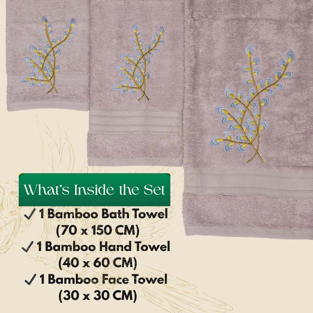 Mrijaa Bamboo Bath Set | Floral Cascade | Set of 3 | Grape