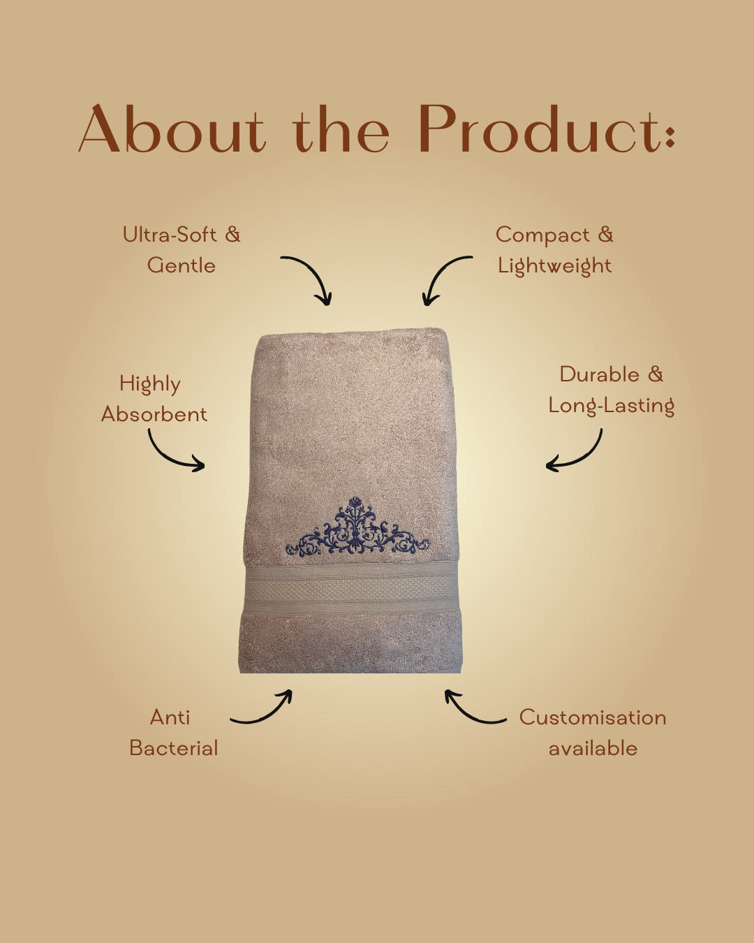 Naturally antibacterial and eco-conscious, it is gentle on sensitive skin and designed to retain its softness and structure even after repeated washes. The warm beige tone paired with elegant Majestic Bloom embroidery adds a timeless, sophisticated touch to your everyday essentials.