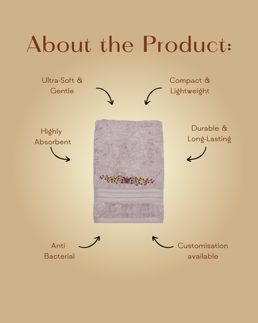 Naturally antibacterial and eco-friendly, it is gentle on sensitive skin and retains its softness and durability even after repeated washes. The deep grape hue, paired with subtle Orchid Mist embroidery, adds a sophisticated, calming charm to your everyday essentials.
