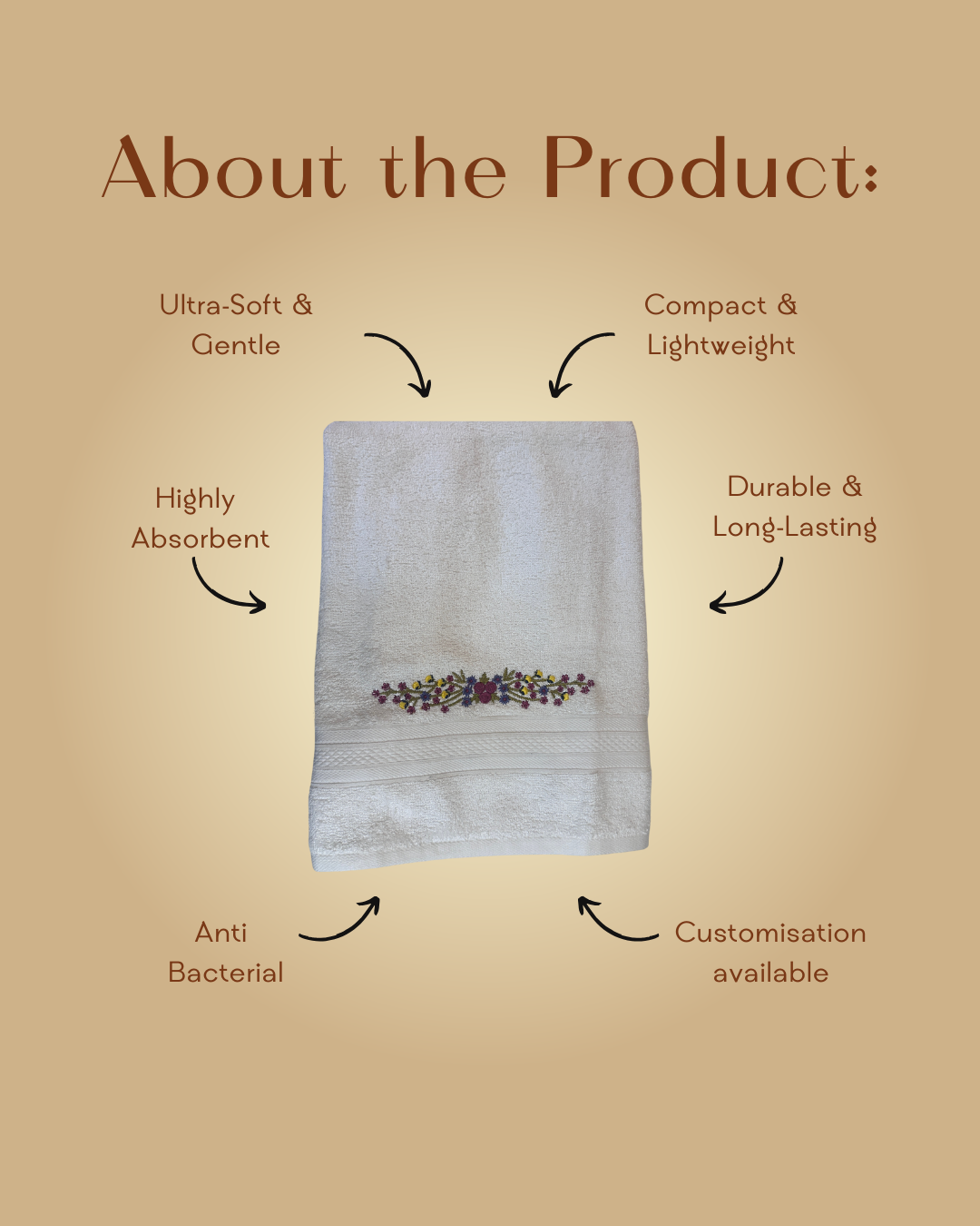 Naturally antibacterial and eco-conscious, it is gentle on sensitive skin and designed to retain its softness and durability even after multiple washes. The crisp white tone, accented with subtle Orchid Mist embroidery, brings a serene, spa-like elegance to your everyday essentials.